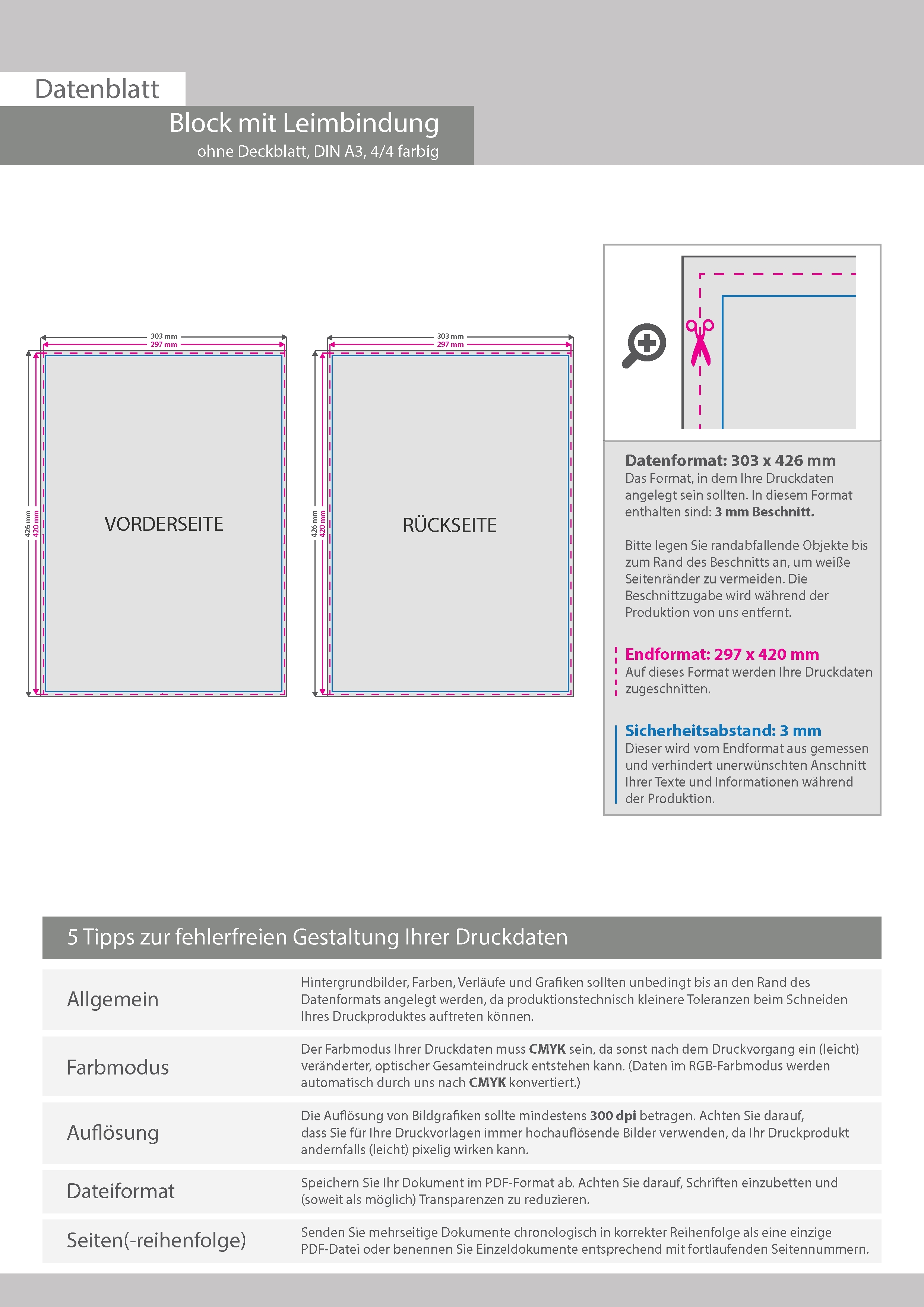Block mit Leimbindung, DIN A3, 200 Blatt, 4/4 farbig beidseitig bedruckt
