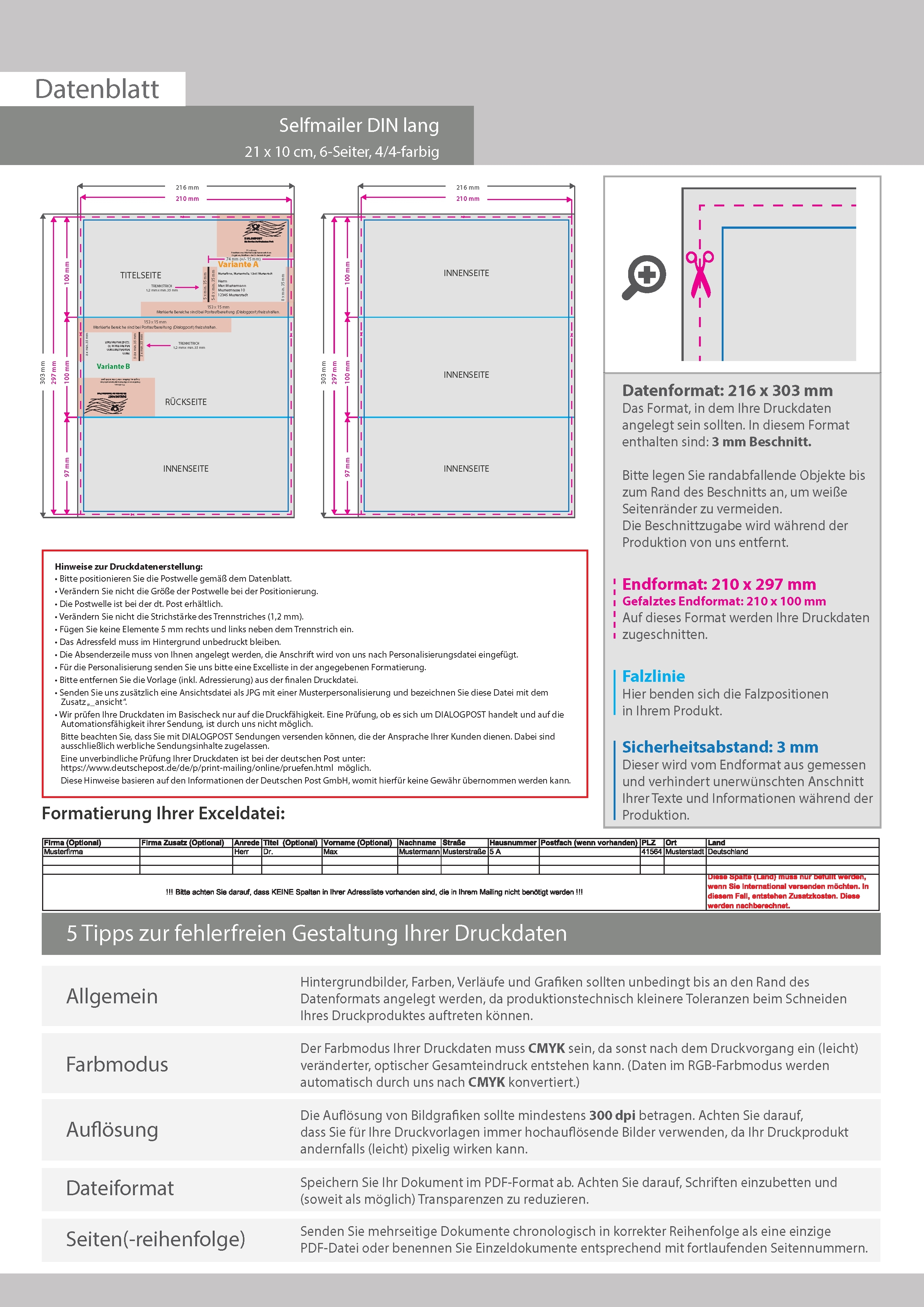 Selfmailer, gefalzt auf DIN lang (21,0 x 10,0 cm), 6-seiter