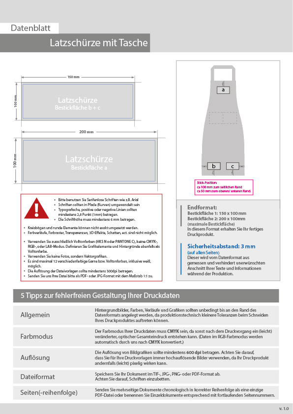 Latzschürzen mit Taschen mit EINER Stickposition