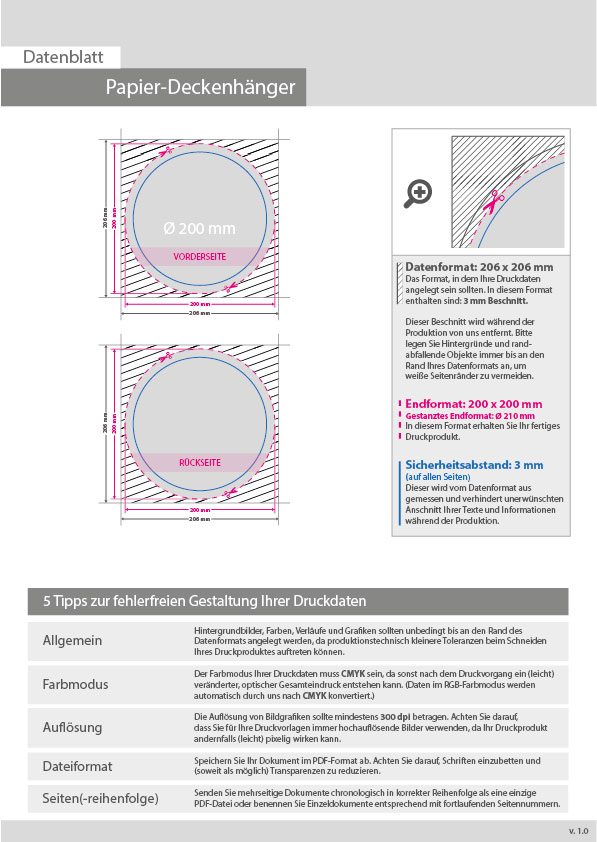 Papier-Deckenhänger 3-teilig, rund (Durchmesser 20 cm), 4/4-farbig beidseitig bedruckt