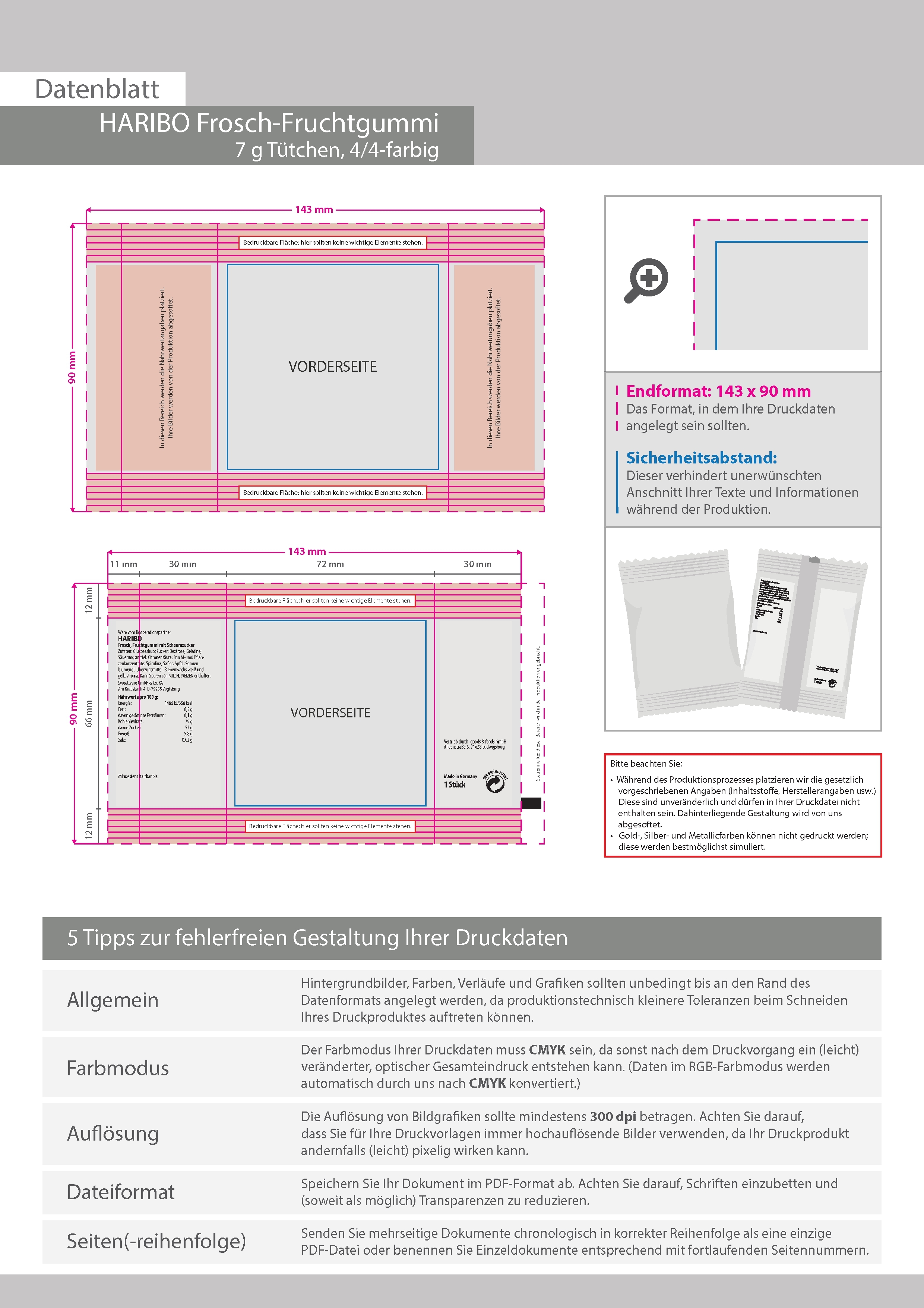 HARIBO Frosch-Fruchtgummi, ca. 7g Tütchen, 4/4 farbig beidseitig bedruckt