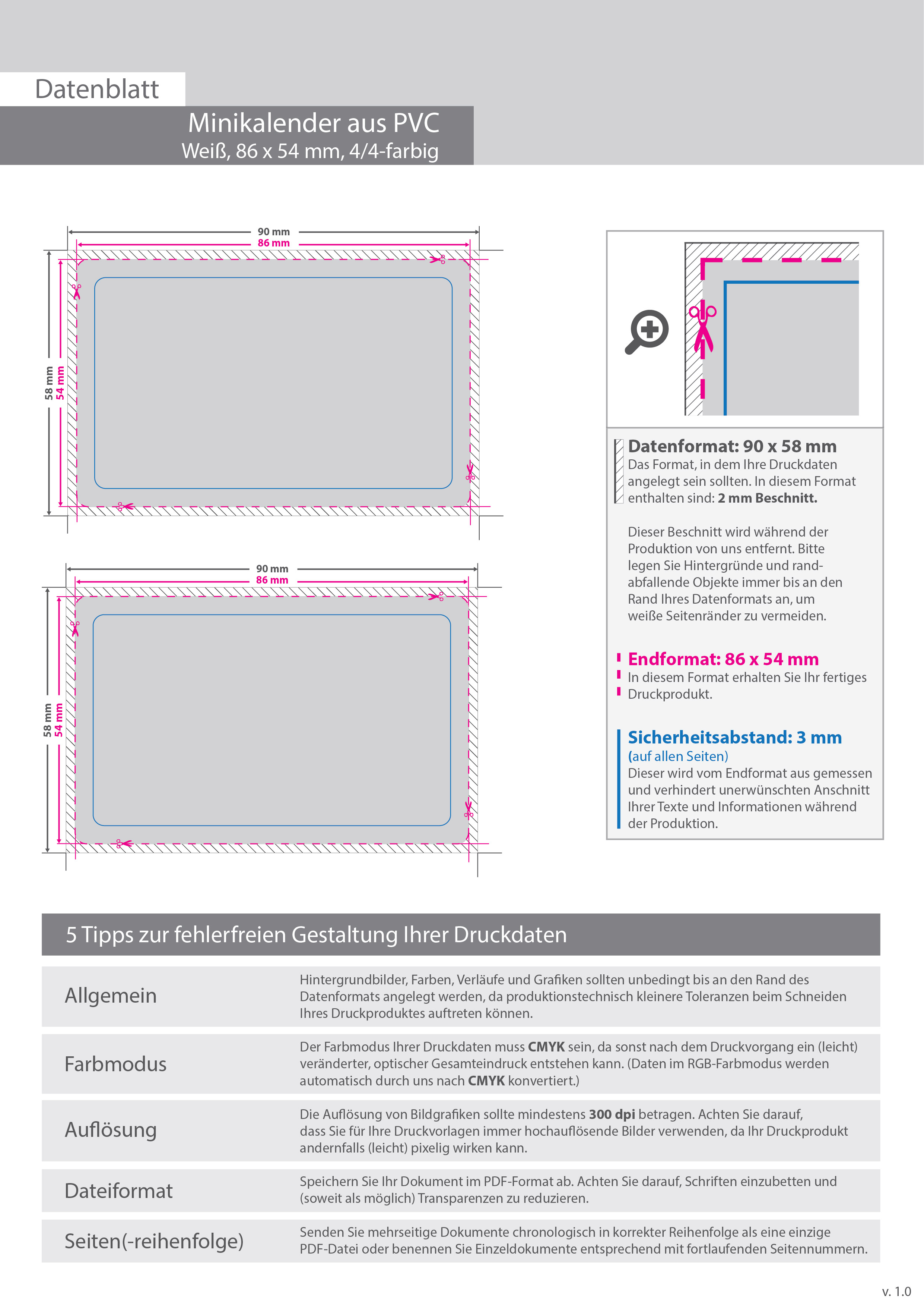 Minikalender aus PVC 4/4 farbig bedruckt auf weißem Hintergrund