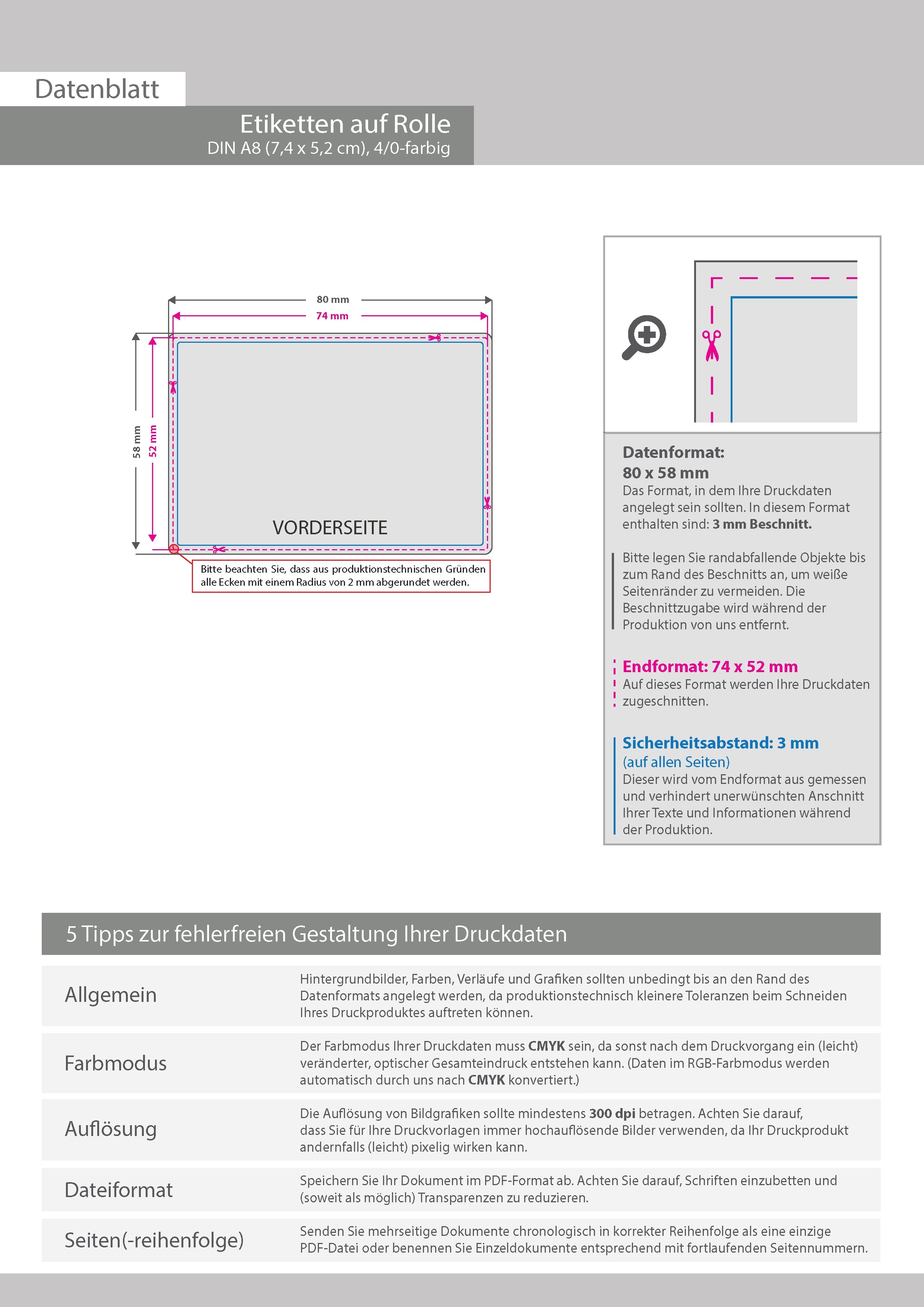 Hochwertige Etiketten auf Rolle DIN A8 (7,4 x 5,2 cm)