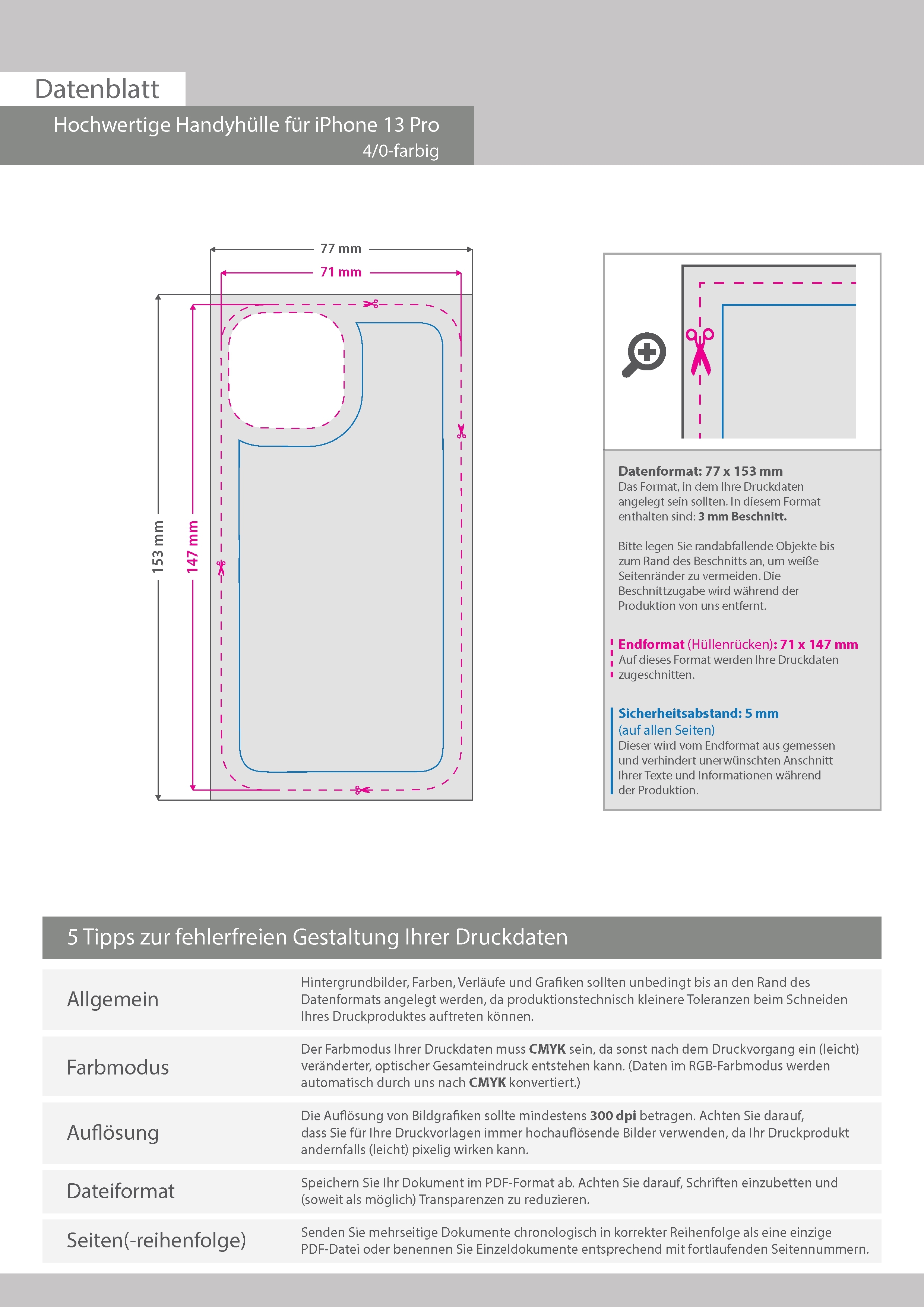 Hochwertige Handyhülle für iPhone 13 Pro, 4/0-farbig einseitig bedruckt