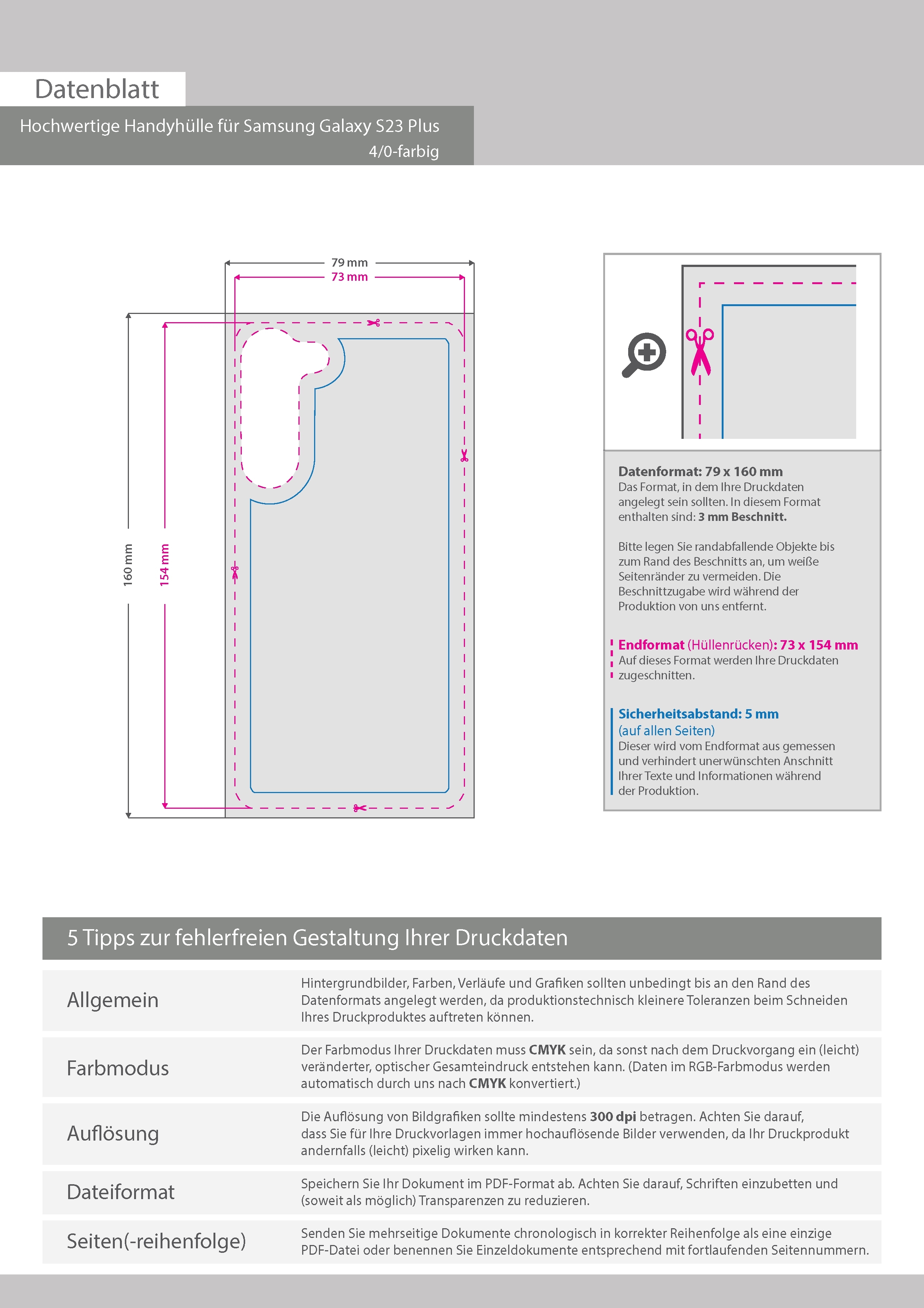 Hochwertige Handyhülle für Samsung Galaxy S23 Plus, 4/0-farbig einseitig bedruckt
